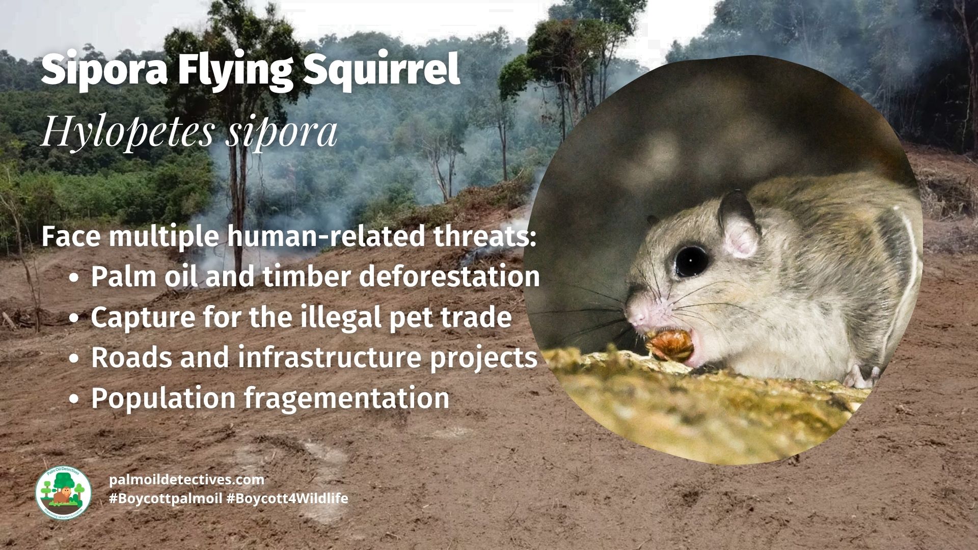 The habitat of the Sipora Flying Squirrel is being deforested for timber, firewood and conversion to agricultural land.