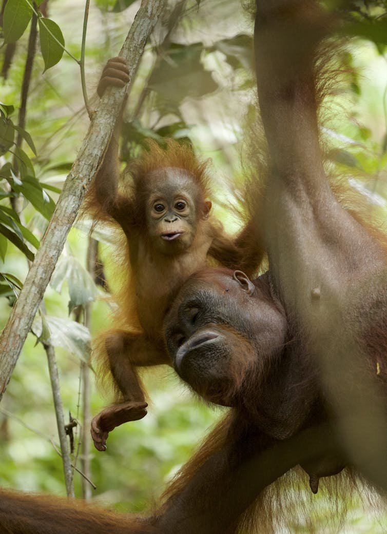 Orangutan populations of all three species are critically endangered in the wild. One of the things that may hamper their survival is the time they take to rear new generations.