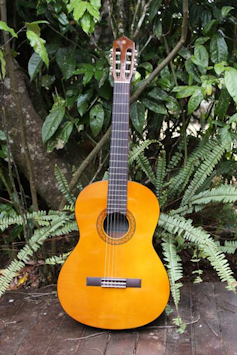 I recently bought my very first guitar. The strong straight wood grain of the impeccably-finished instrument tells me it came from a tropical rainforest tree — a tree that may have reached 45 metres high. This tree was felled to provide the plywood that backs my guitar.