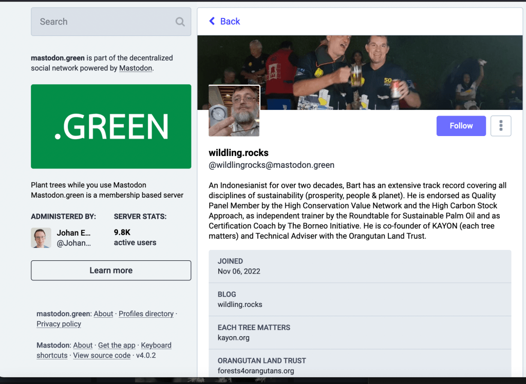 He currently uses: @palmoiltruther, @Apes4Forests @Forests4Apes @BartWVanAssen @eachtreematters @vliegerholland on Twitter. In the past, Bart has trained people to undertake audits in order to verify that palm oil plantations adhere to RSPO certified sustainable standards. The RSPO’s audits have been independently verified by different organisations to be fraudulent.