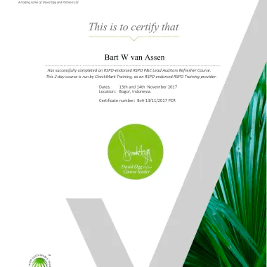 Bart W Van Assen – Lead Auditor Trainer for the RSPO