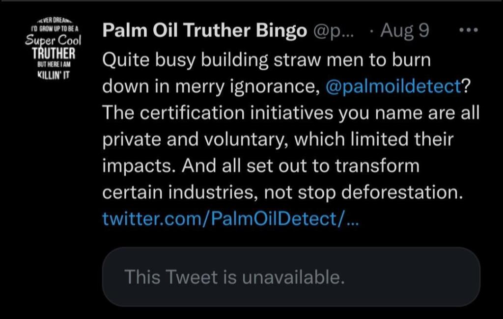 Research from @TraseEarth finds 15-90% of #palmoil from traders @Cargill #Wilmar @Musimmas_Group cannot be traced and is linked to #deforestation. Stop buying #ecocide in your shopping. Instead #Boycottpalmoil 🌴🤮☠️🚫 #Boycott4Wildlife @palmoildetect https://palmoildetectives.com/2022/05/15/global-traders-cargill-wilmar-musim-mas-bunge-olam-source-palm-oil-soy-meat-in-a-way-thats-a-serious-deforestation-risk/