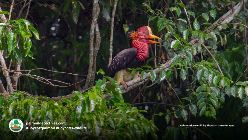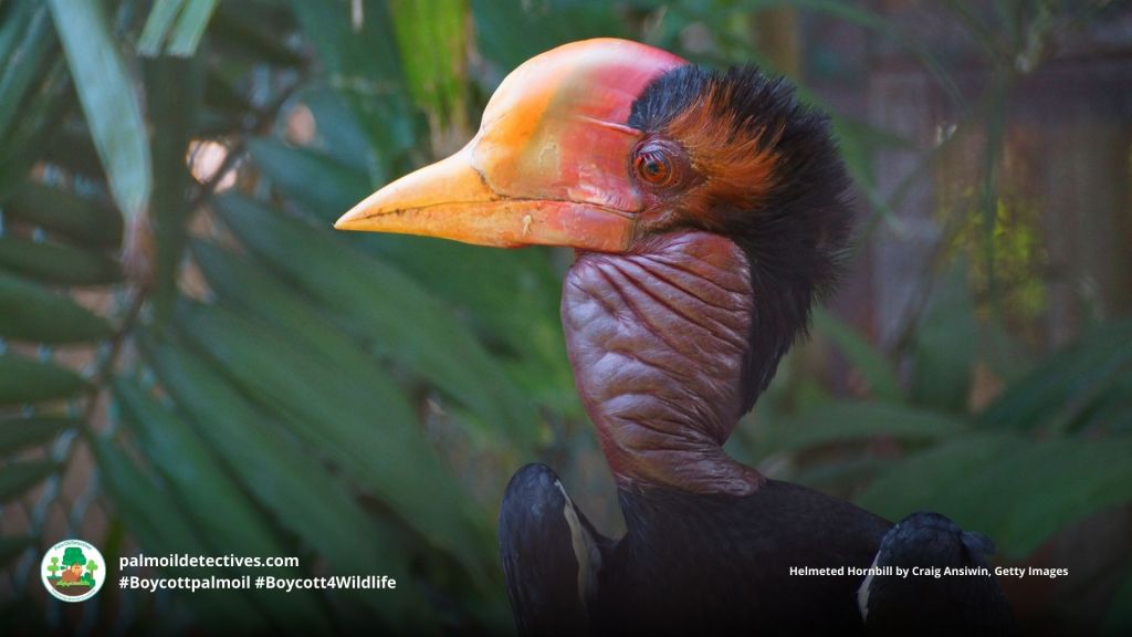 Magnificent Helmeted #Hornbills are surrounded and cornered by #palmoil #deforestation and illegal #poaching for their casques. Help these birds and resist when you #Boycottpalmoil 🌴🔥🩸☠️⛔️ #Boycott4Wildlife @palmoildetect https://palmoildetectives.com/2022/11/29/helmeted-hornbill-rhinoplax-vigil/