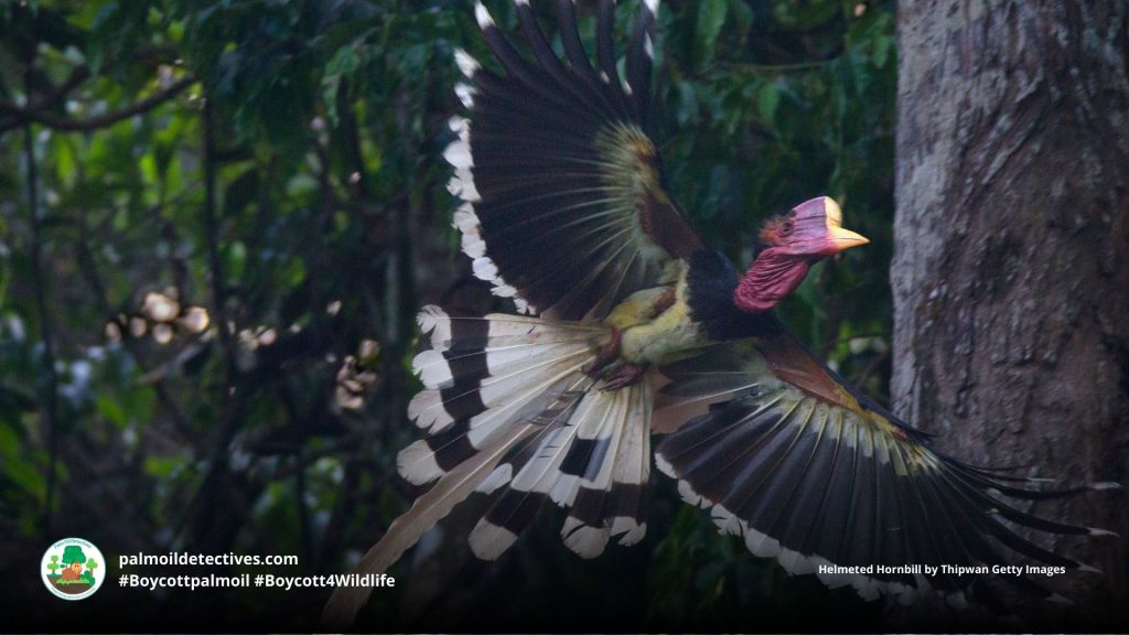 Support Helmeted Hornbills by going vegan and boycotting palm oil in the supermarket, it’s the #Boycott4Wildlife