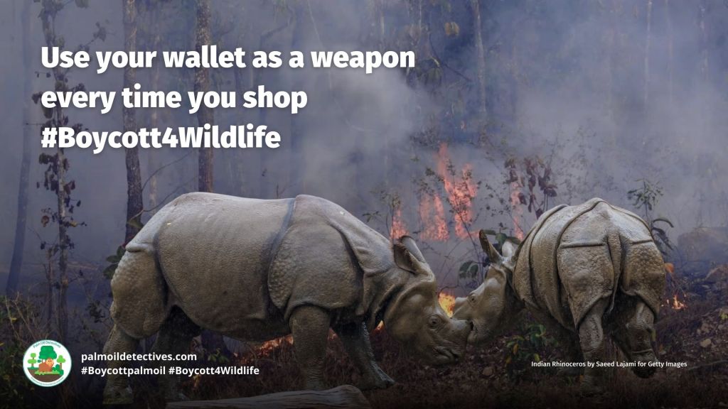 Support Indian Rhinos by going vegan and boycotting palm oil in the supermarket, it’s the #Boycott4Wildlife