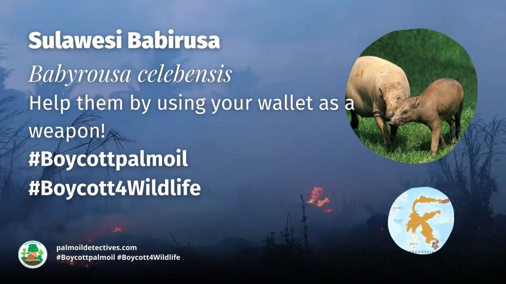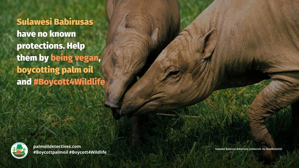Support the Sulawesi Babirusa and other wild pigs by going vegan and boycotting palm oil in the supermarket, it’s the #Boycottpalmoil #Boycott4Wildlife