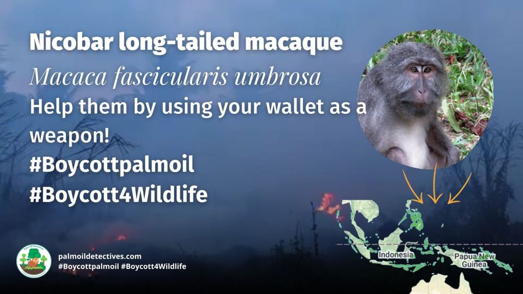 Support Nicobar Long-tailed Macaques by going vegan and boycotting palm oil in the supermarket, it’s the #Boycottpalmoil #Boycott4Wildlife